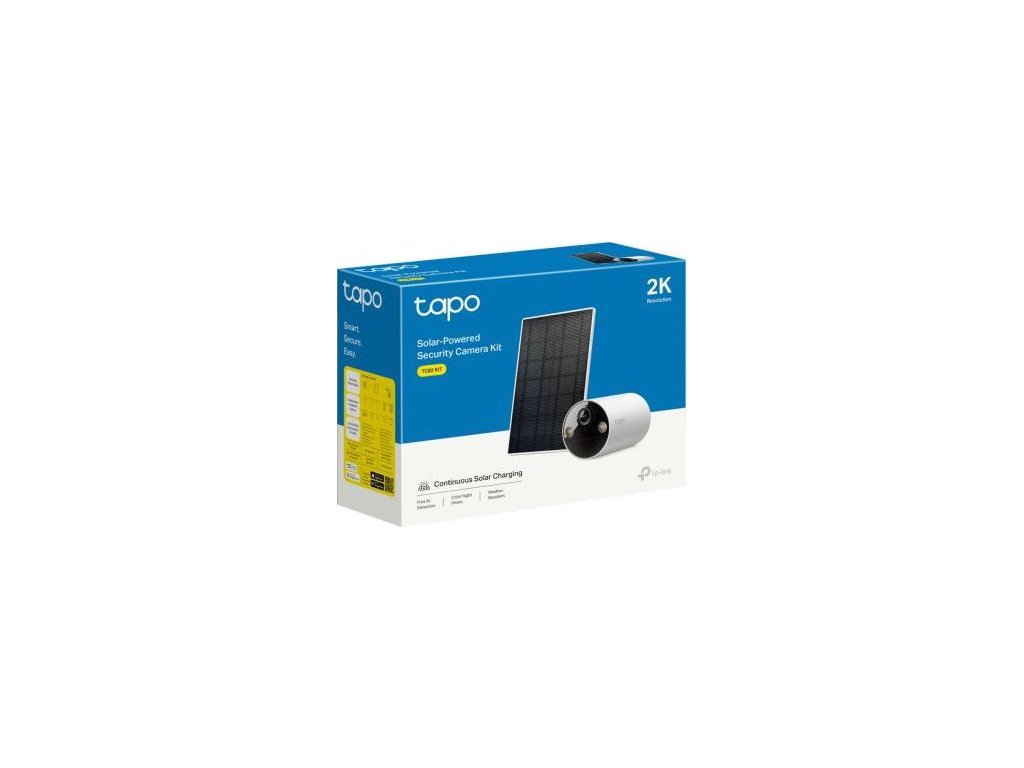 Bezdrôtová vonkajšia bezpečnostná kamera TP-Link Tapo TC82, 2K 3MP, nočné videnie, IP65 + solárny panel TP-Link Tapo 2,5W, IP65, čierna/biela