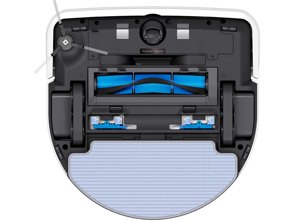 Výkonné přední sání robotického vysavače LEGEE D8 vysaje veškeré větší nečistoty, vlasy a zvířecí chlupy. Speciální hlaví kartáč se zadním nasáváním precizně vysaje nečistoty z hladkých podlah i koberců. 4 speciální trysky dávkují vodu na uklízenou podlahu a mop setře a vyleští podlahu. Mop se při úklidu koberců automaticky nadzvedne 7 mm nad koberec.